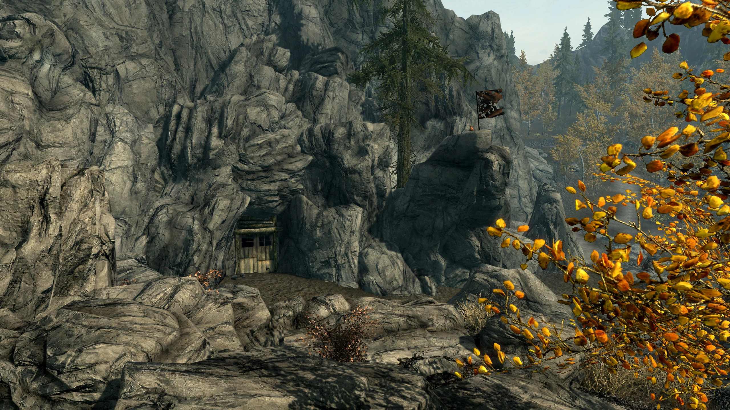 Boulderfall Cave is a small cave located south-west of Shor's Stone and north-north-west of Autumnshade Clearing. It is guarded by a high level necromancer. Inside is an alchemy lab, a Corundum Ore Vein and a copy of the Herbalist's Guide to Skyrim.