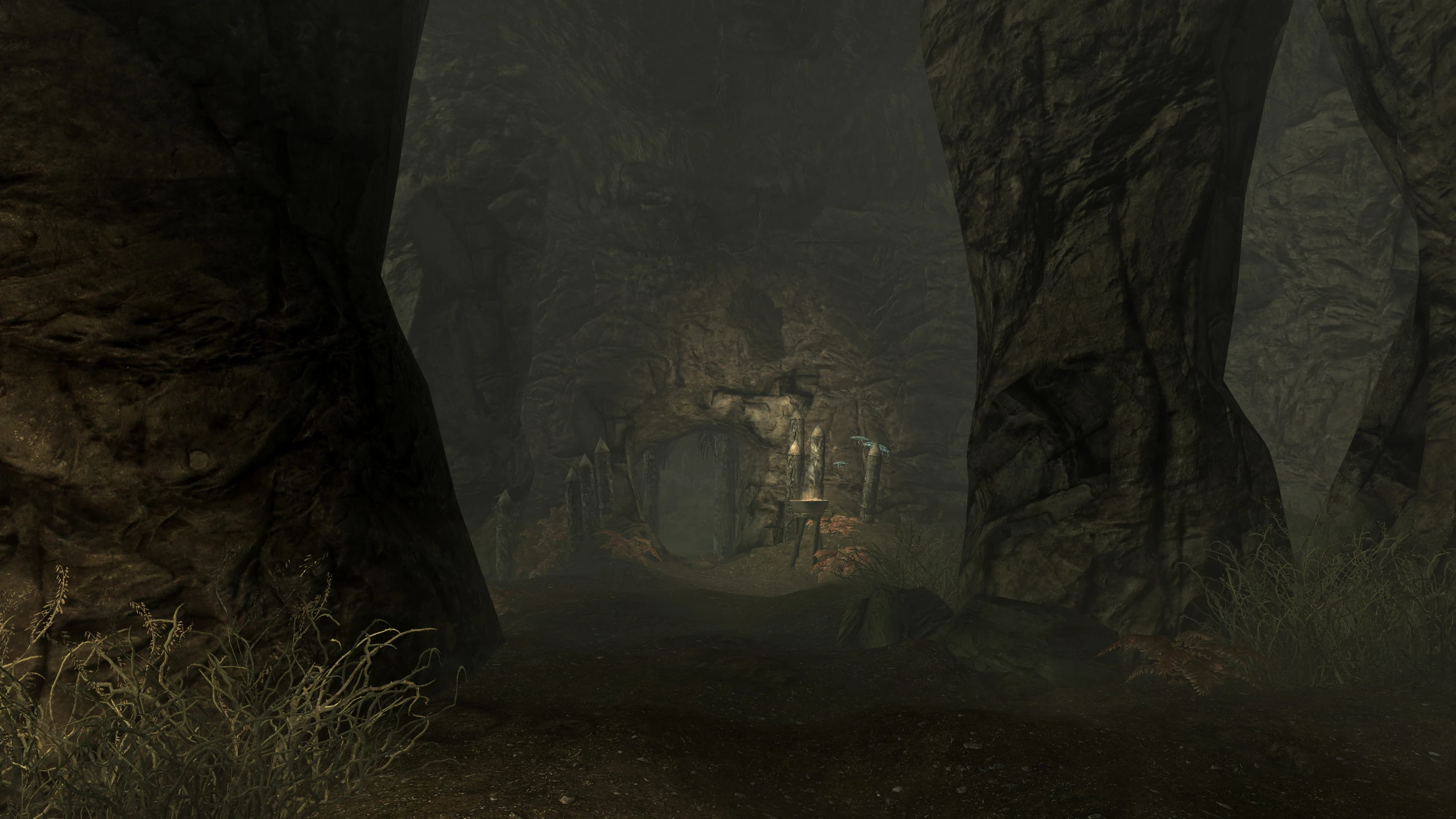 Dead Drop Falls is a cave which accessed through the north-east section of Fort Dawnguard. The first chamber consists of a waterfall which empties into a relatively deep well. Further chambers in the cave can only be access by jumping down the well and surfacing in an underground lake.