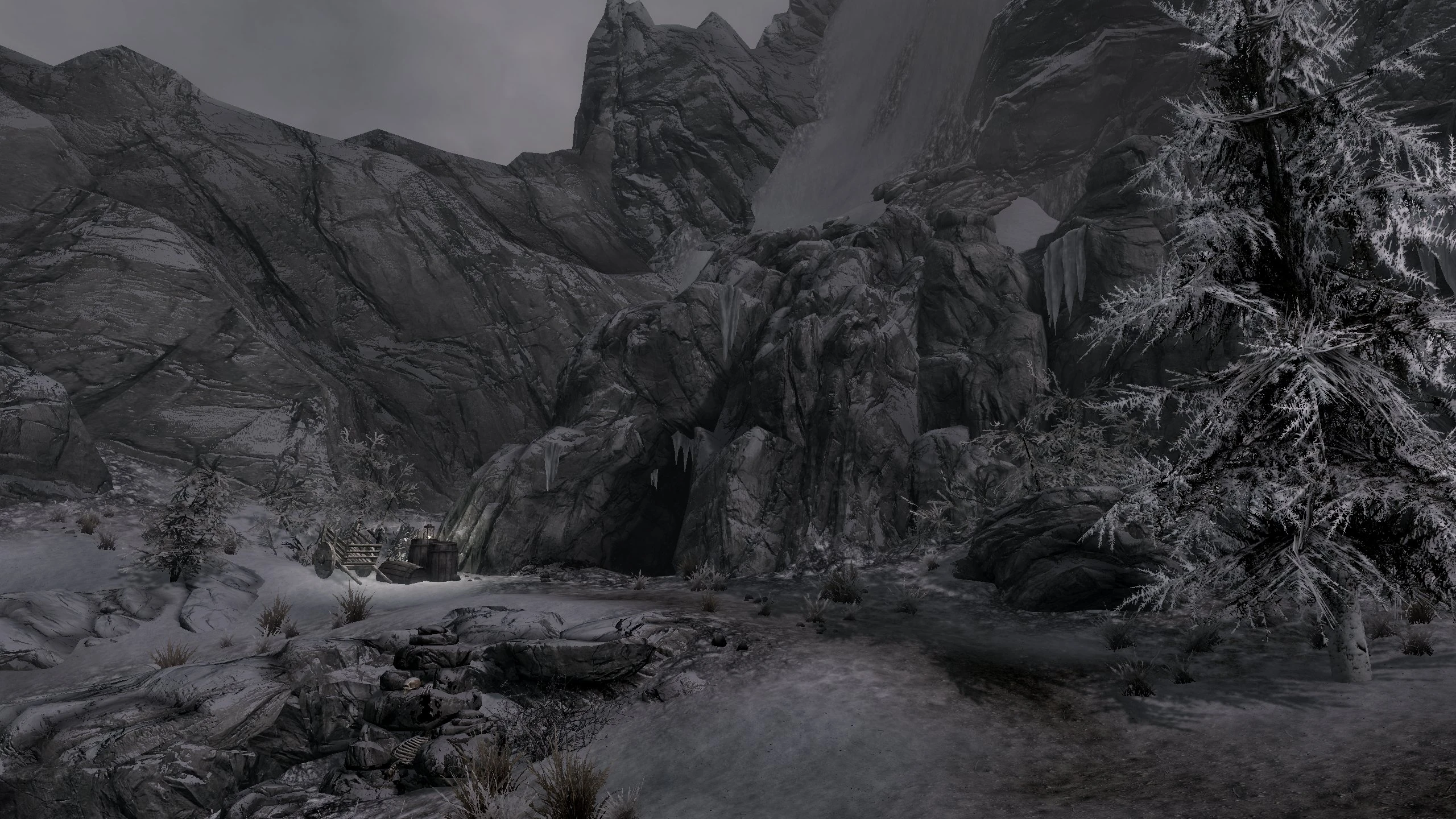 Haemar's Shame is a small, frozen cave directly south of the Throat of the World on a small goat path in the mountains. It is full of vampires and for some reason, a single Frostbite Spider.