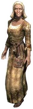 Olava the Feeble is an elderly female Nord and seer who lives in a small house behind Breezehome in Whiterun.