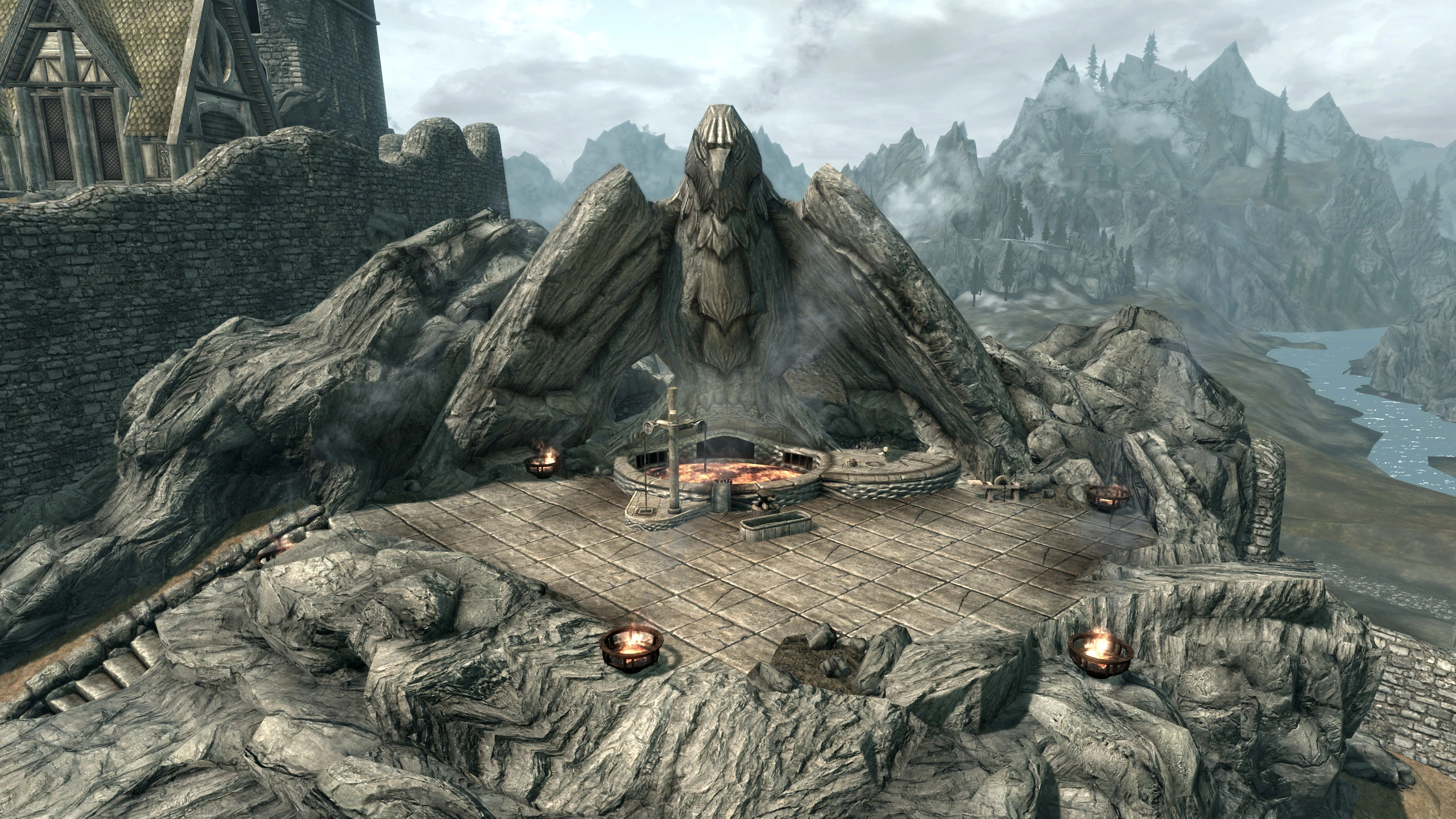 The Skyforge is an ancient forge that predates both Jorrvaskr and Whiterun. No one knows who built it and it is currently being used by Eorlund Gray-Mane to produce Skyforge Steel weapons for The Companions. The Skyforge also serves a dual purpose as a place where deceased Companions are cremated. It is said that the spirits of the dead help strengthen the forge.