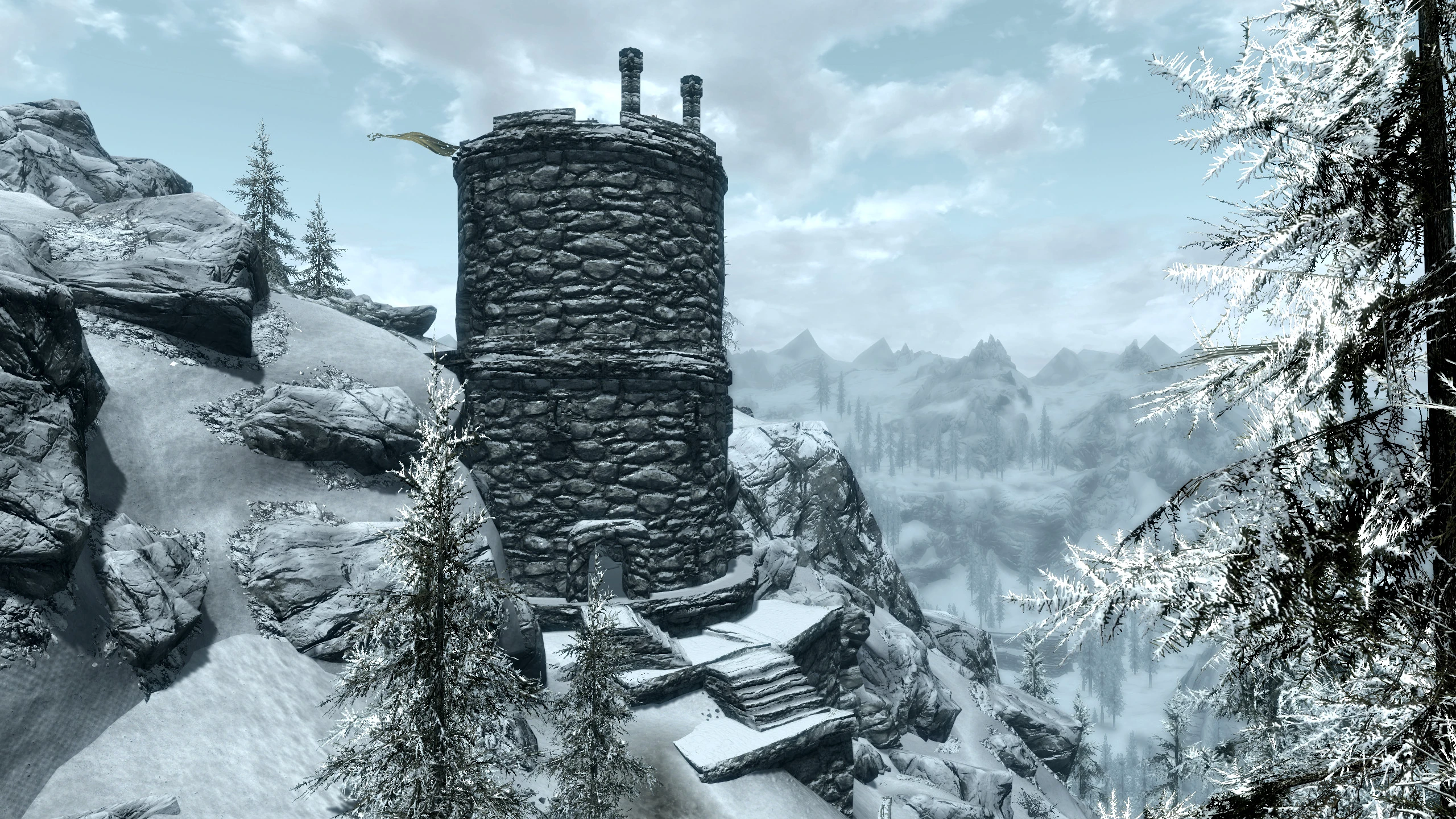 Snowpoint Beacon is a reasonably intact Imperial tower located up the hill and south-south-west of Driftshade Refuge. It is occupied by bandits (×2).